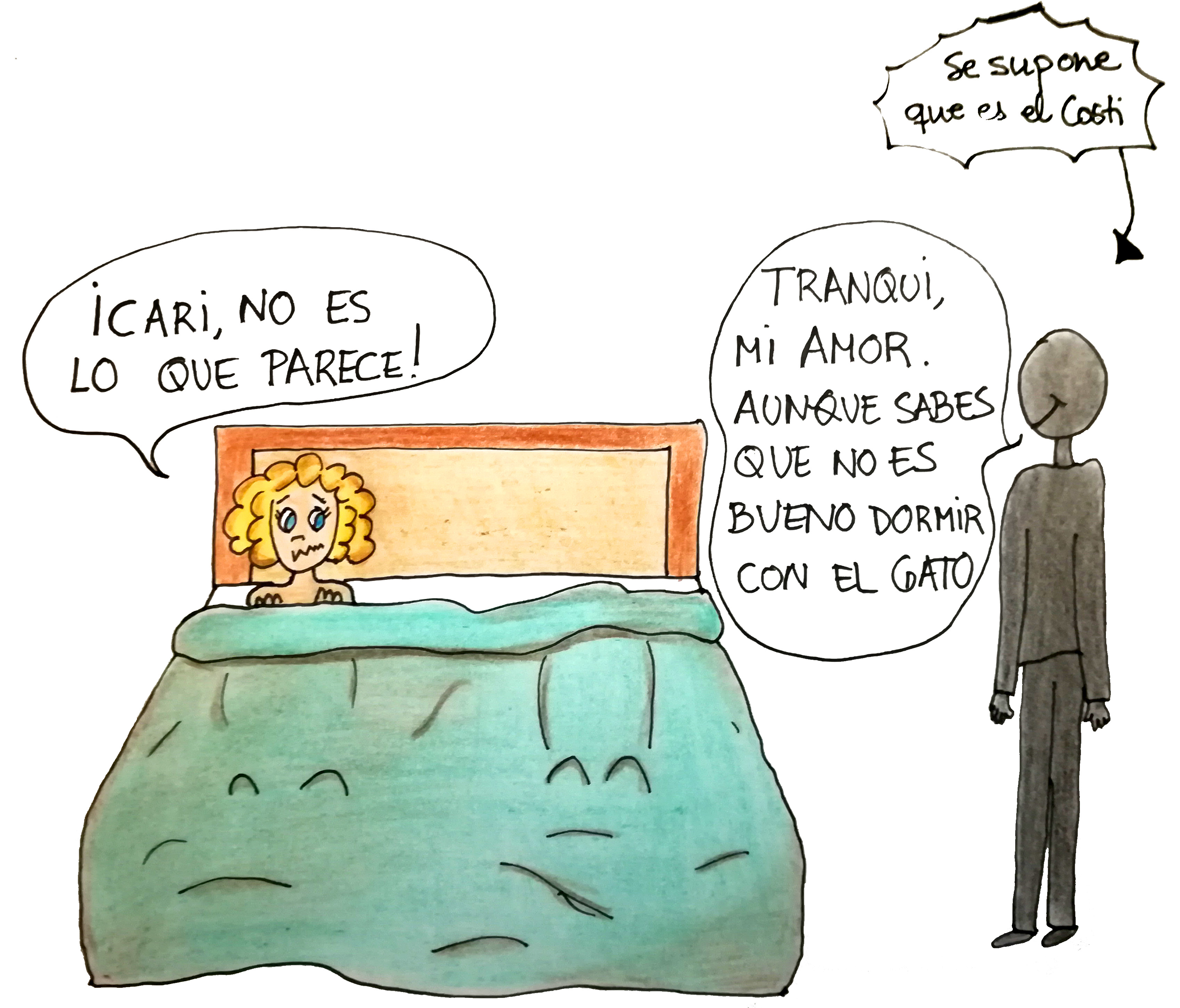 Mi Costillo y yo nunca nos hemos escondido nada en este sentido. Principalmente porque NO HAY NADA QUE ESCONDER. Podemos tomar un café con otro ser humano, llevarlo a su casa en coche porque es tarde y porque llueve e, incluso, agarraos que viene lo fuerte, subir a su piso a las tres de la mañana a por un colacao, porque es enero y vienes cansado de la cena de empresa.