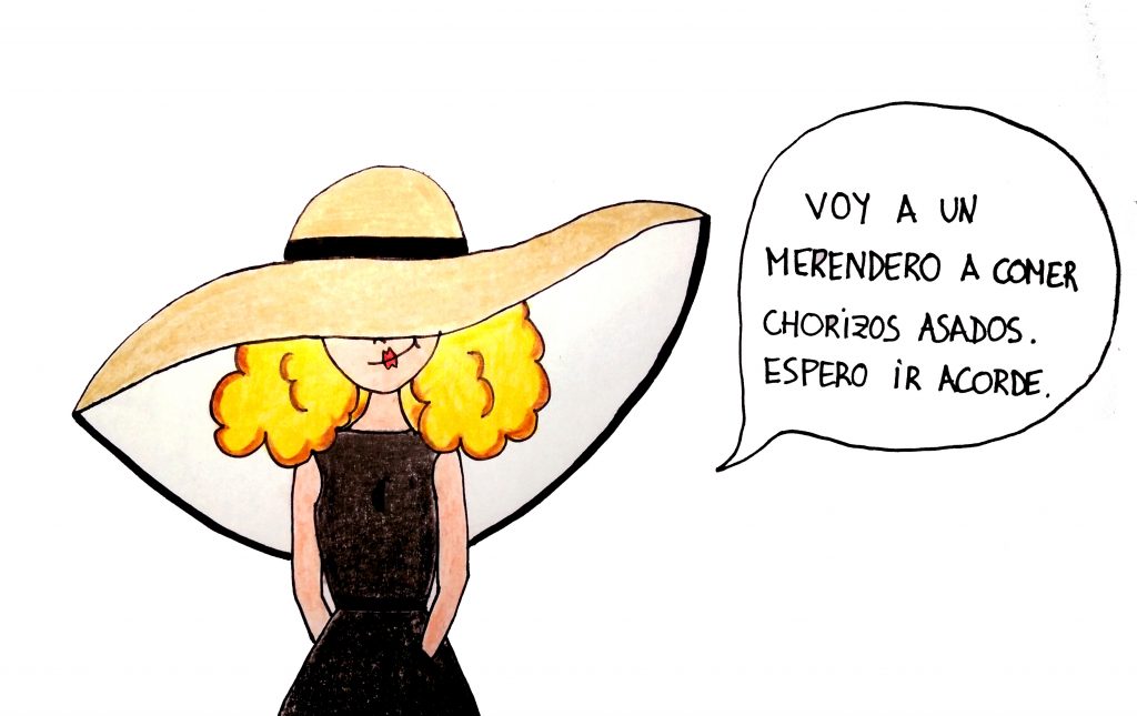 Una vez llegado el día en cuestión, no tenía muy claro si había código de vestimenta, con lo que me cambié de conjuntito tres veces. Pasé de un look Decathlon a un look de diva de Fellini en menos de diez minutos, que es lo que pasa cuando te vas haciendo mayor e ir simplemente duchada y limpia no es suficiente. Más es más, y nunca me importará llegar a un merendero con una pamela digna de Ascot. En ese aspecto siempre he ido a mi aire.