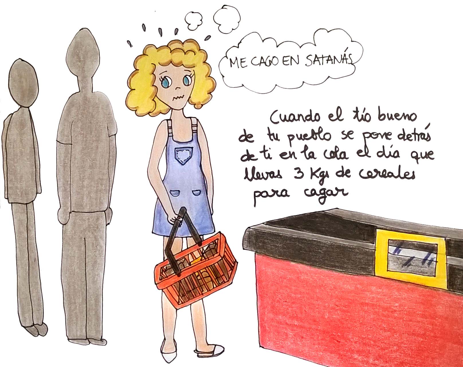 Así que una vez que ya tenemos la mercancía nos vamos hacia la caja. Lo peor de todo es que cuando te fijas en todos tus artículos colocados en la cinta, se te queda cara como…como….como de que cagas mal, vamos. “Joder“, -suelta el Costi-, “Menuda compra. Todo de lo mismo, voy a poner otra cosa más que sea algo distinta”. De inmediato la cajera nos pregunta: “La compra es hasta aquí, ¿verdad?”. “No”, -responde el Costi-, “¿Me pones un tubo de Loctite, por favor?”.