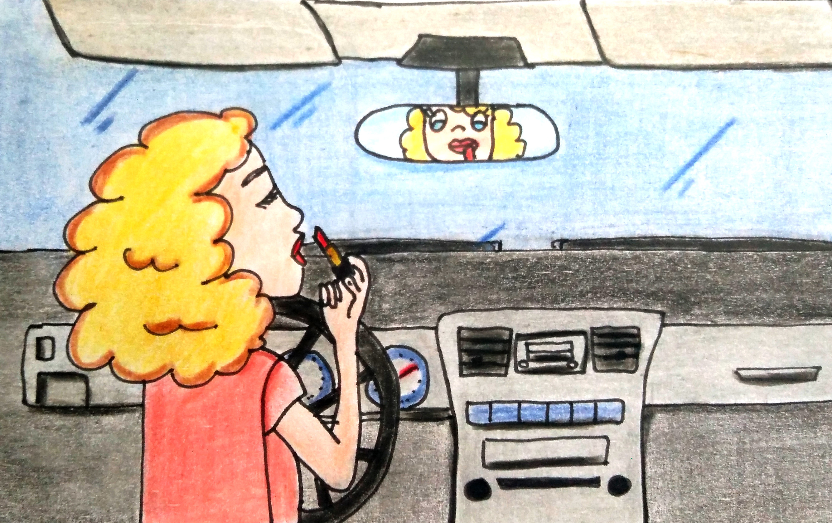 -Joder, cari, pero a ver, que no te lo digo por mal, pero digo yo que es más importante la carretera que retocarte el pintalabios mientras conduces. Y no te estoy llamando la atención. Solo es una opinión. Cari.